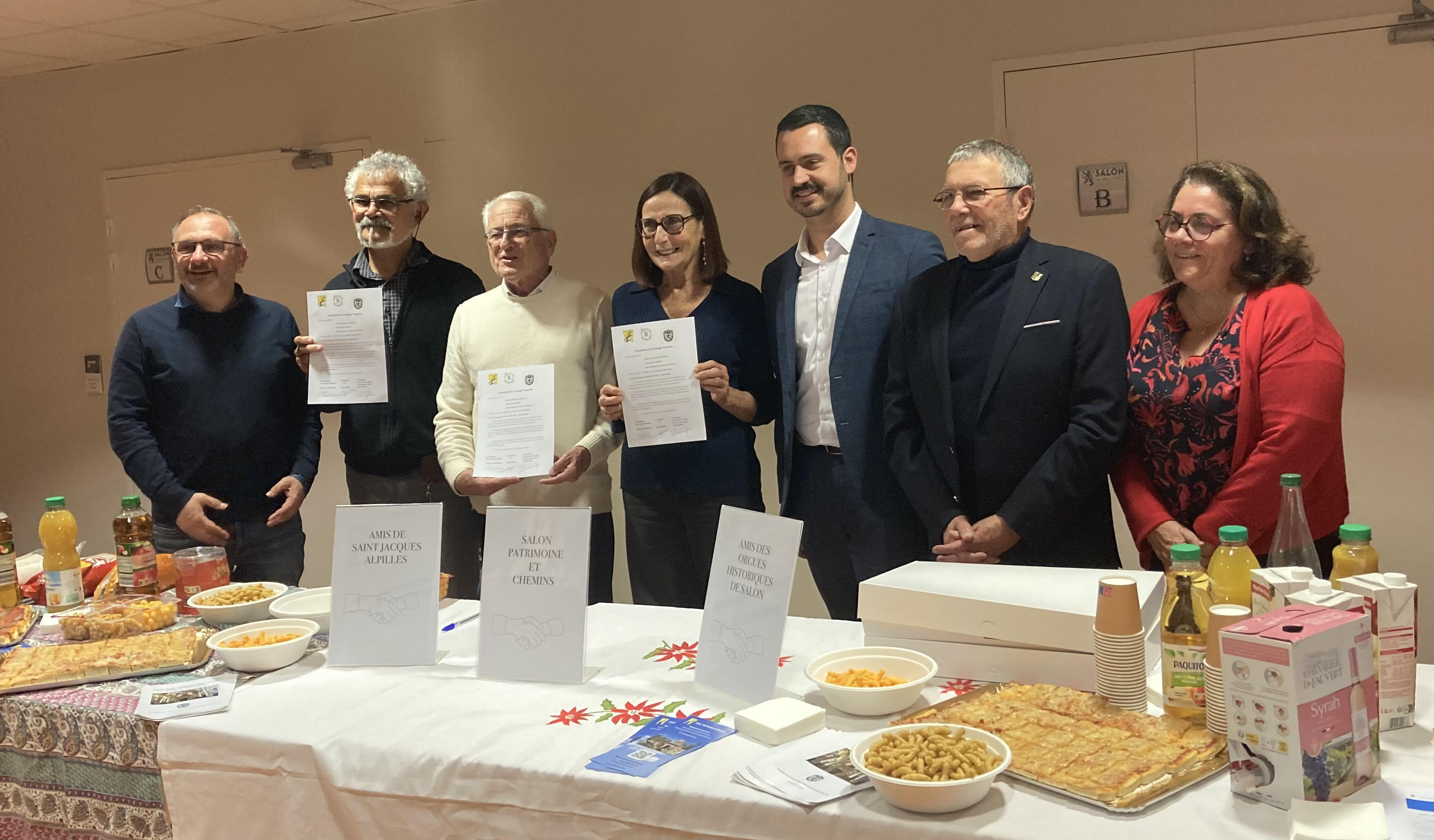 Ce mercredi 26 novembre 2025, en fin d’après-midi, s’est tenue à la Maison de la Vie Associative une rencontre importante réunissant les membres de nos trois associations salonaises engagées dans la valorisation et la protection du patrimoine local. À cette occasion, nos Conseils d’Administration respectifs ont officiellement signé une Convention de Jumelage, marquant une étape essentielle dans le renforcement de notre coopération.