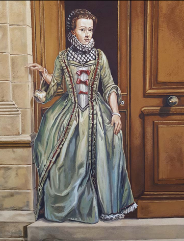 L'une des figures se trouve être un personnage des cruelles Guerres des religions, la jeune aristocrate du XVIe siècle, Suzanne de Vacquerolles.