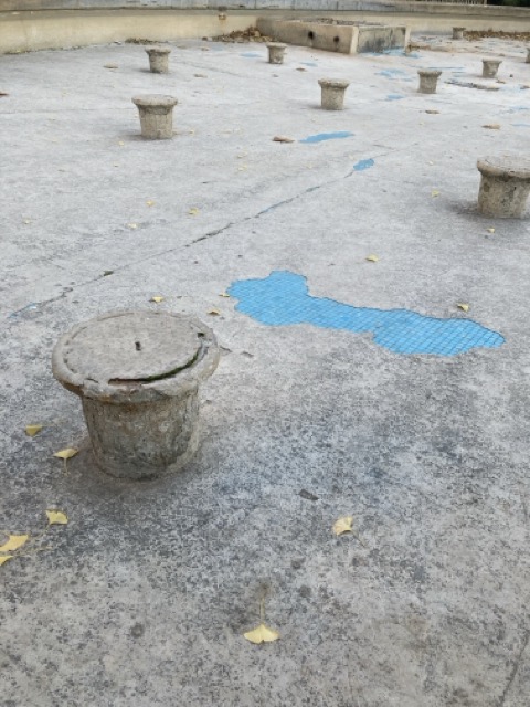 1) La fontaine n'est plus en eau depuis de longs mois...
