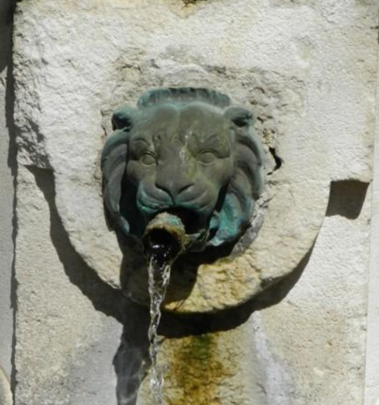 Aujourd’hui, l’eau jaillit de quatre mascarons en forme de tête de lion.