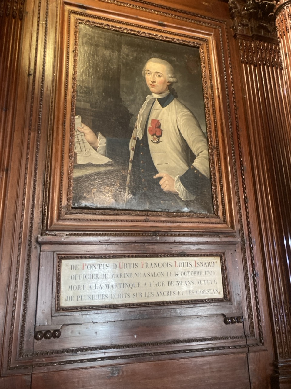 DE PONTIS D'URTIS FRANCOIS LOUIS ISNARD, OFFICIER DE MARINE NE A SALON LE 14 OCTOBRE 1703, MORT A LA MARTINIQUE A L'AGE DE 39 ANS, AUTEUR DE PLUSIEURS ECRITS SUR LES ANCRES ET LES CABESTANS