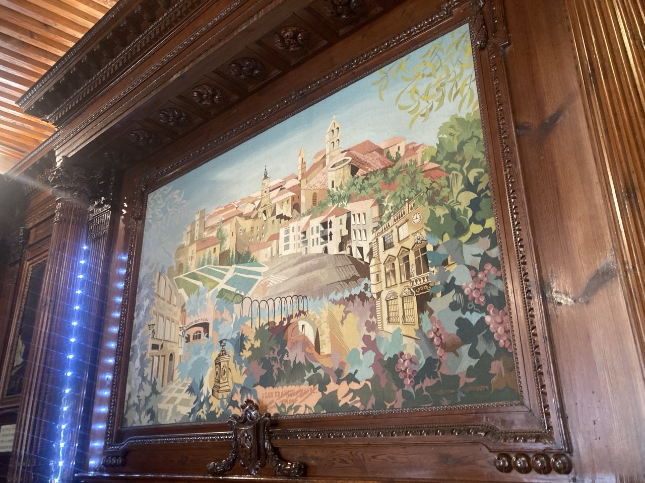 Ils ont été réalisés aux armoiries de la ville en 1962, tandis que la tapisserie d'Aubusson à été offerte au maire Jean Francou pour les 30 ans de son mandat en 1986.