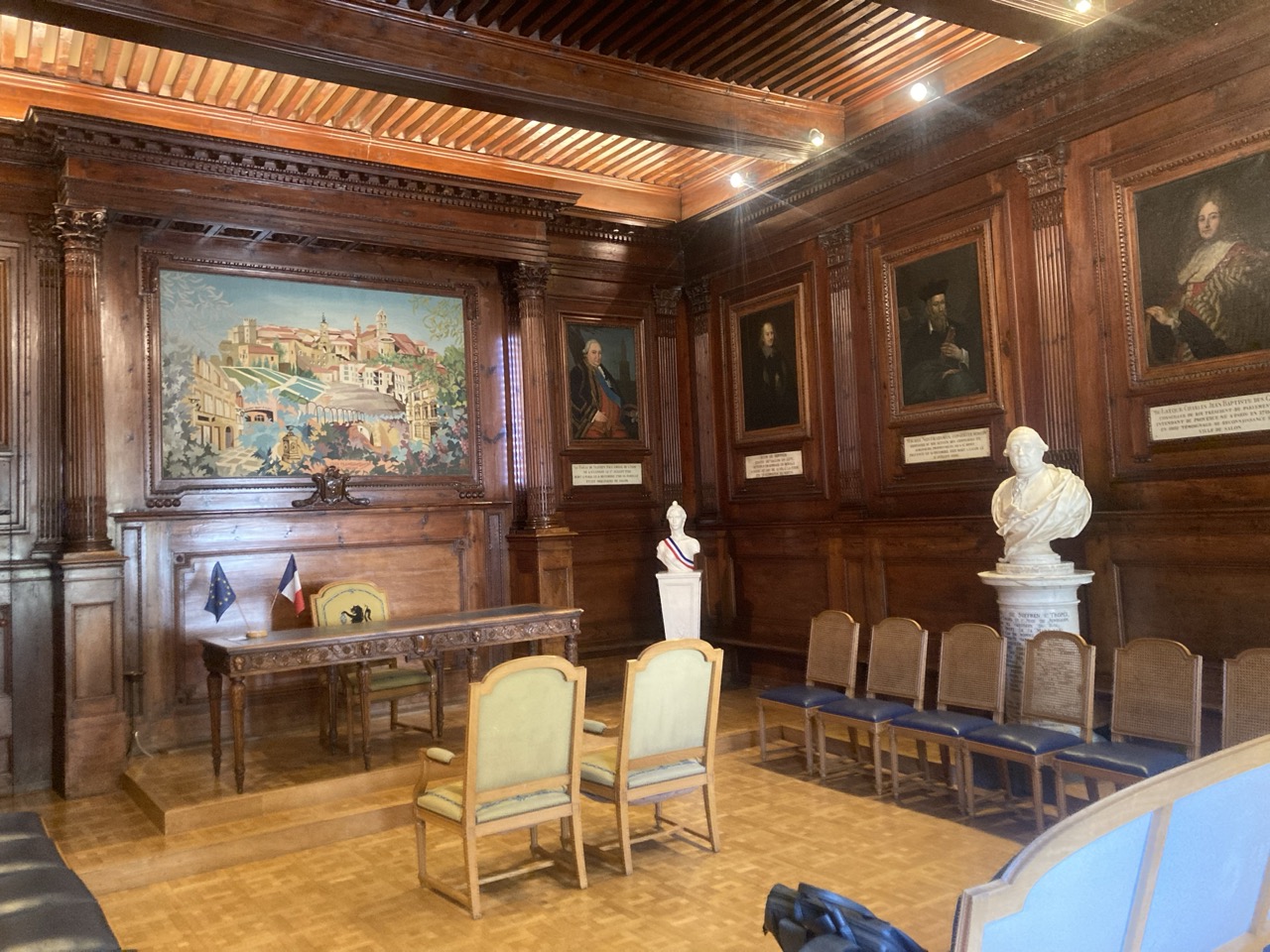 Cette salle comportait à l'origine les portraits des rois de France, mais après la Révolution, ceux-ci ont été remplacés par ceux des plus illustres des hommes du Pays Salonais